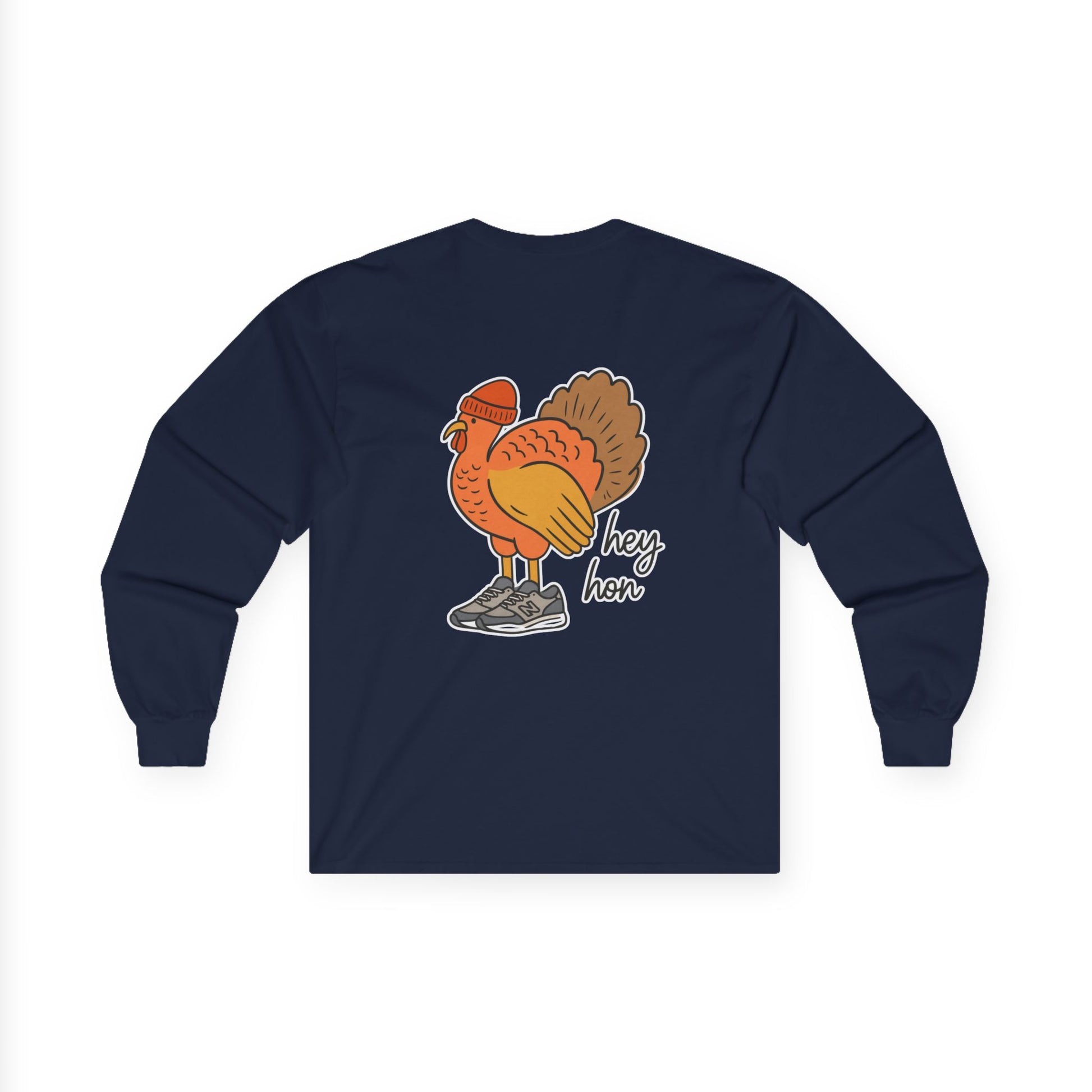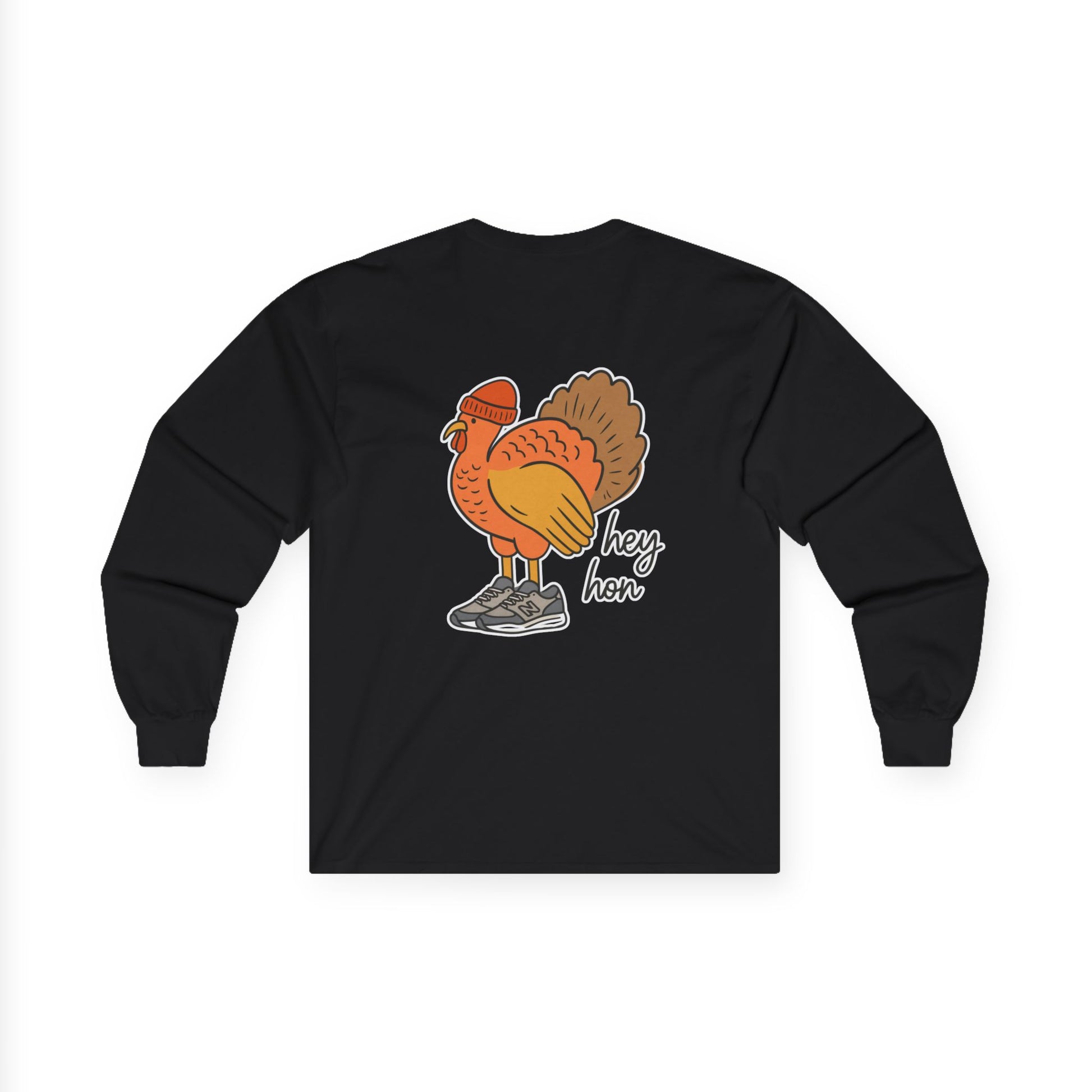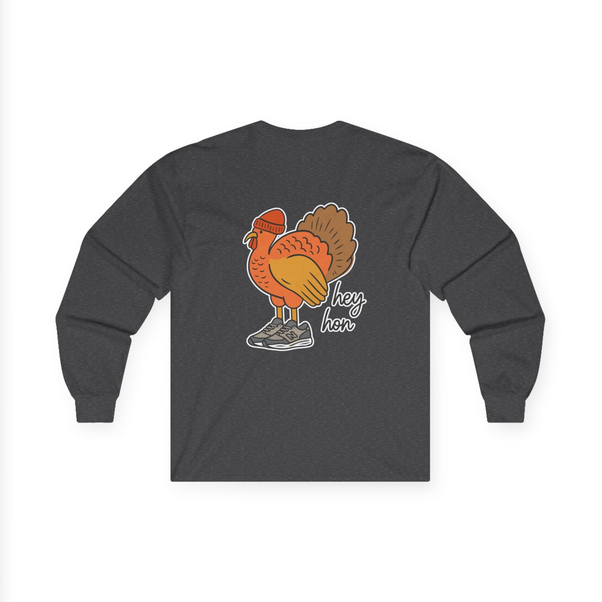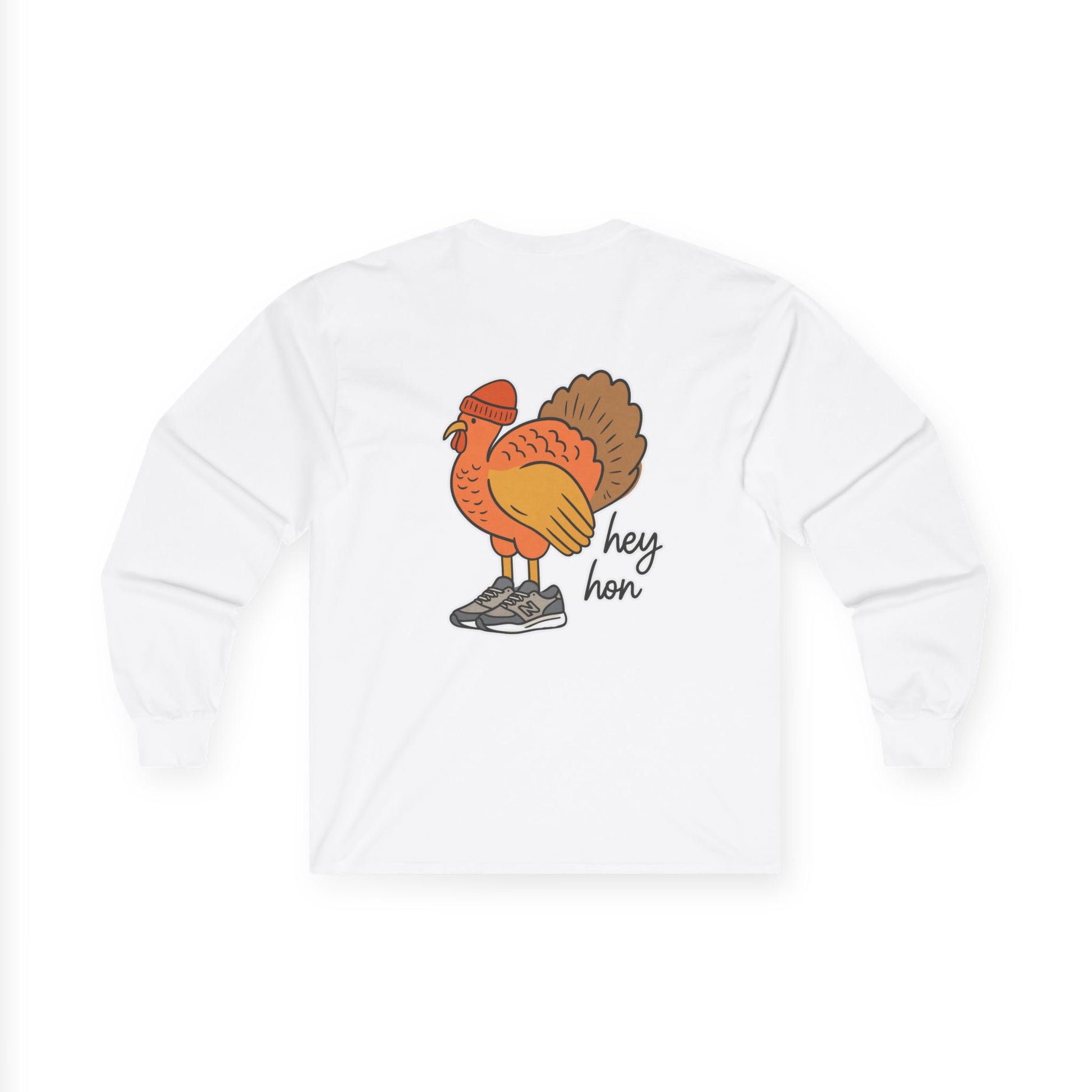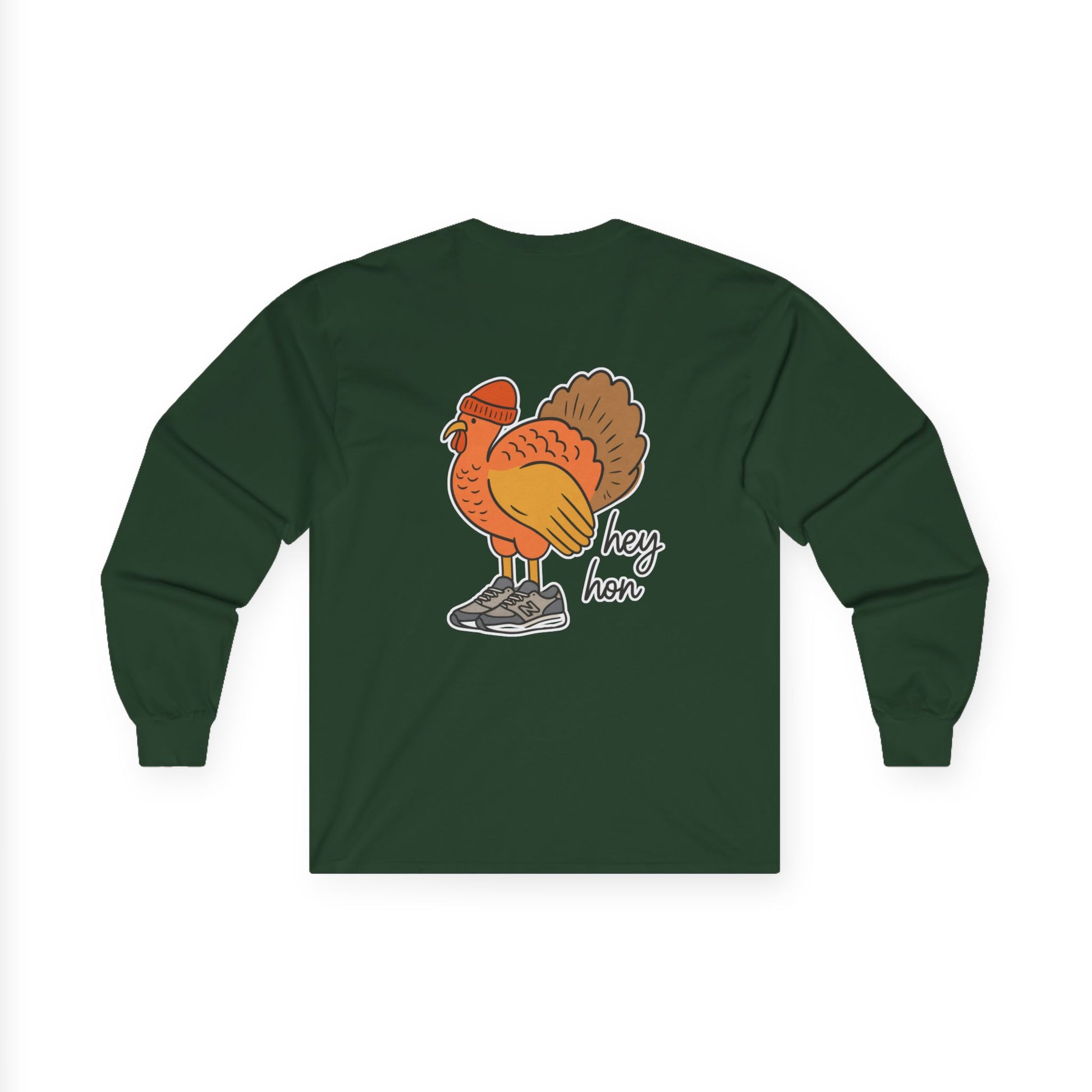 Illustration: Turkey in beanie + New Balances, “hey hon” script