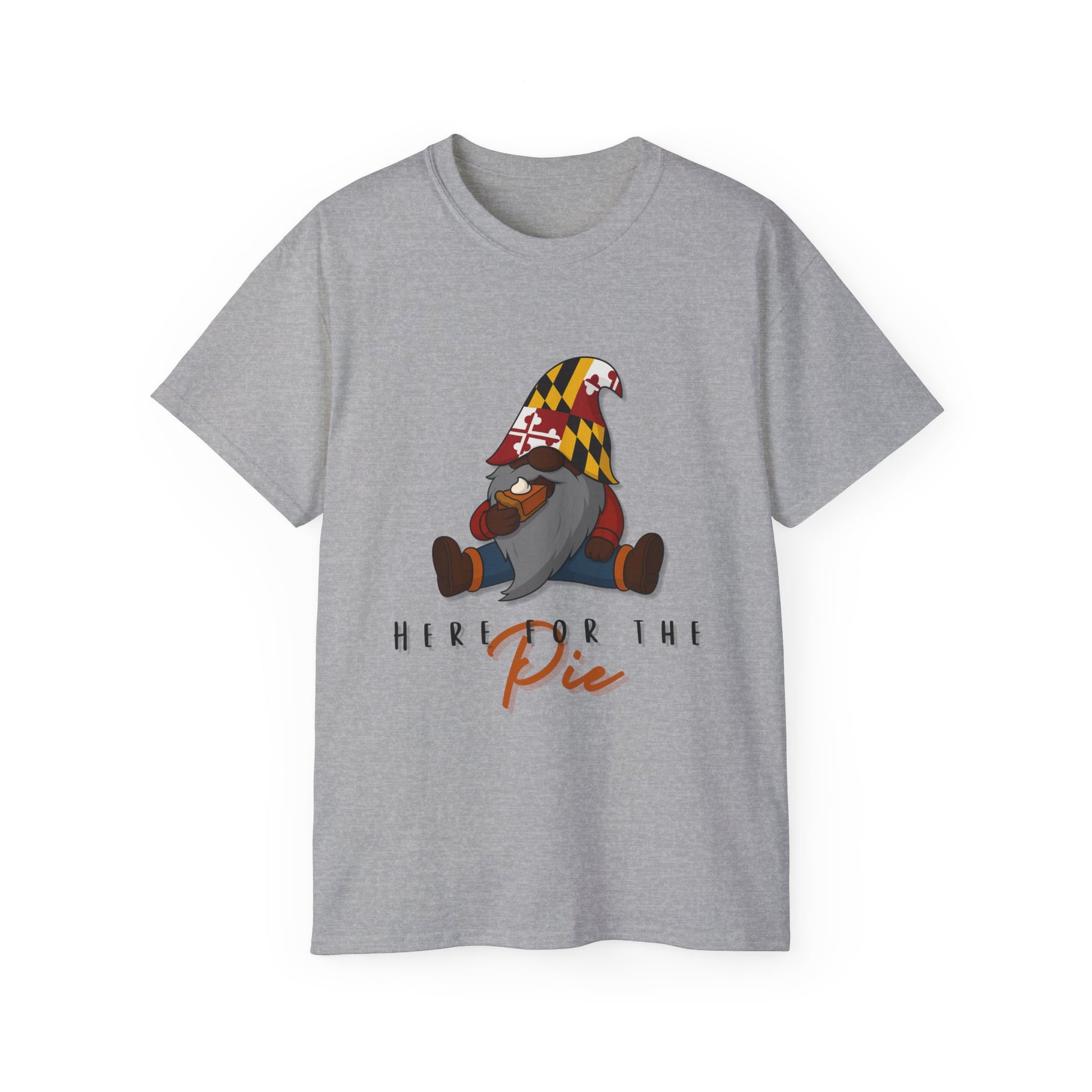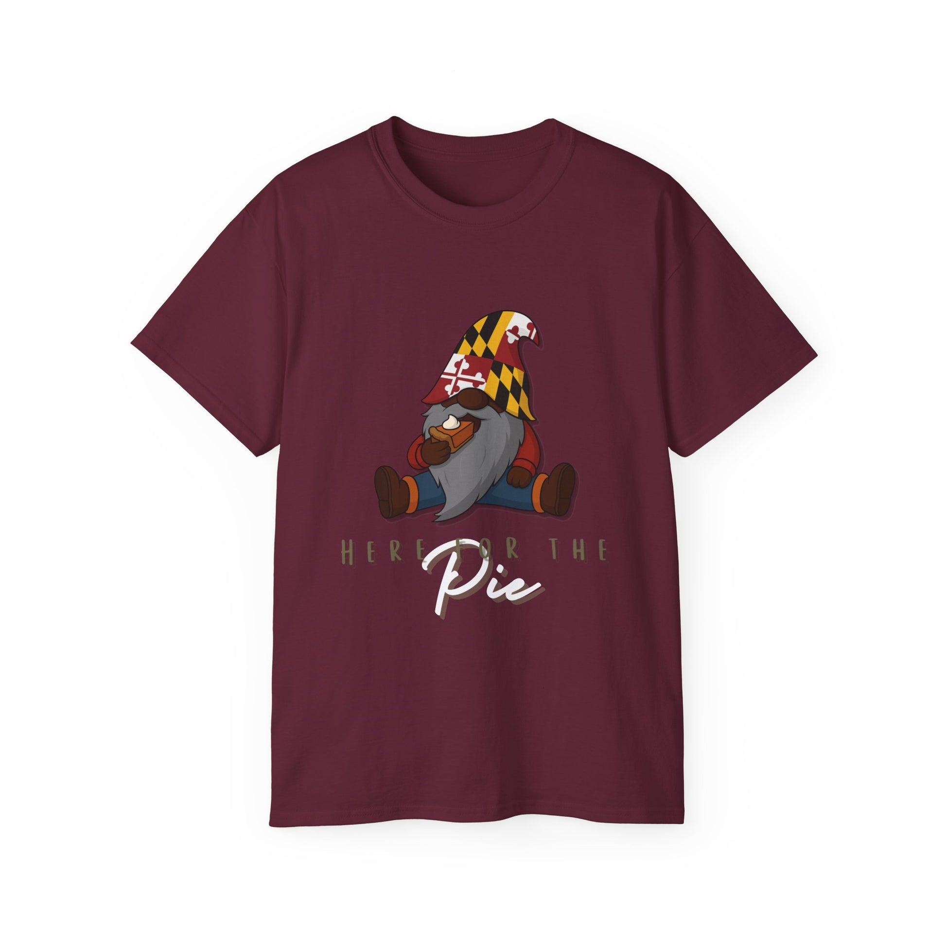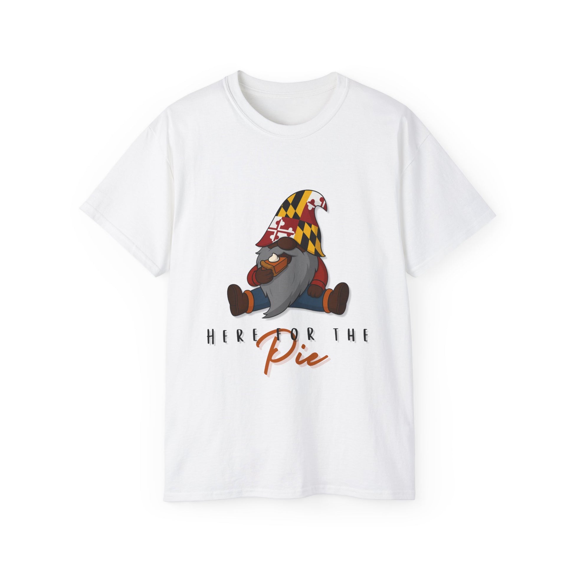 This shirt features a cheerful gnome rocking a Maryland flag hat, happily digging into a slice of sweet potato pie. Paired with the playful phrase “Here for the Pie”, it’s the perfect tee for anyone who shows up to Thanksgiving dinner with one thing on their mind—dessert.